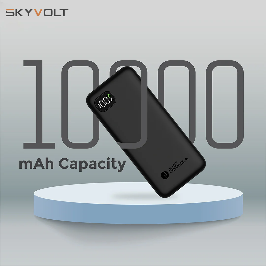 JUST CORSECA Skyvolt JST500 10,000mAh Power Bank delivers efficient PD 20W fast charging performance for quick and reliable power delivery to smartphones and other compatible devices. Featuring a smart LED display, it allows easy monitoring of battery status and charging levels. Designed with advanced multi-layer protection, this power bank ensures enhanced safety against overcharging, overheating, and short circuits. With a compact and portable design in White and Black finish, it is ideal for travel and everyday use. Available at Golchha Computer, this power bank offers high-speed charging performance and dependable build quality for Indian customers.