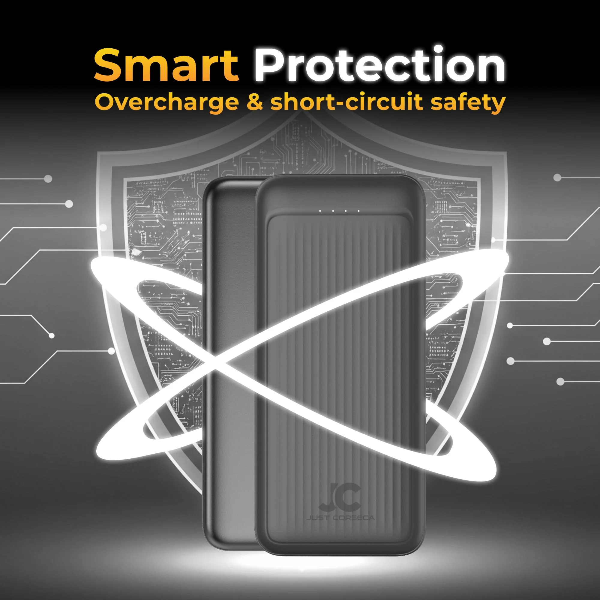JUST CORSECA SKYVOLT JST518 10,000 mAh Power Bank | 22.5 W Fast Charging LED Battery Indicator | Multi-Layer Safety | Universal Compatibility(Black/Silver)