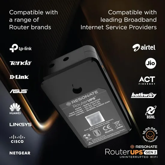 Resonate UPS for WiFi Router 12V 2A (CRU12V2A) Open Box provides reliable backup power for WiFi routers, ensuring uninterrupted internet connectivity during power outages. Designed with a compact and efficient build, it delivers stable 12V 2A output for consistent performance and device safety. Ideal for home and office use, this open box unit offers a cost-effective solution without compromising functionality. Available at Golchha Computer, it ensures dependable power support for Indian customers.