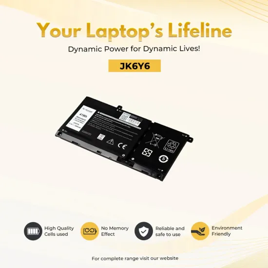 ✅ The Lapcare Laptop Battery JK6Y6 is a high-quality internal replacement battery designed to provide stable power output and long-lasting performance. Featuring advanced Li-Polymer cells, 41.04Wh capacity, and optimized 11.4V voltage, it ensures reliable backup and improved battery life for compatible Dell Inspiron and Latitude series laptops. Ideal for daily office work, study, and portable computing.