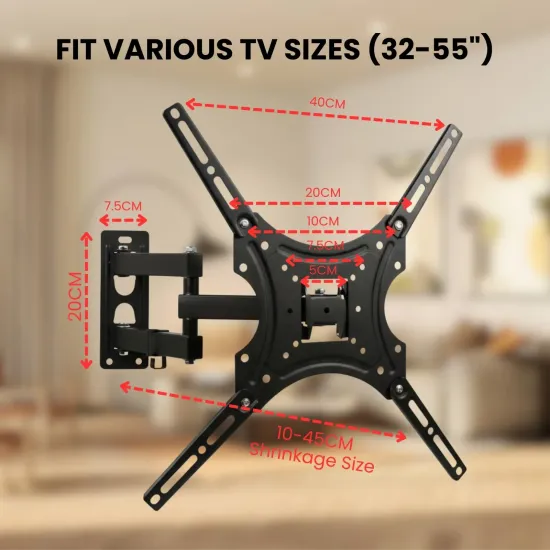✅ The Movable TV Wall Mount Bracket for 32" to 55" TVs is built with heavy-duty metal construction to provide strong support and long-lasting durability. Featuring tilt and swivel adjustment, this mount offers flexible viewing angles while saving wall space. Ideal for LED and LCD TVs in homes, offices, showrooms, and commercial installations.