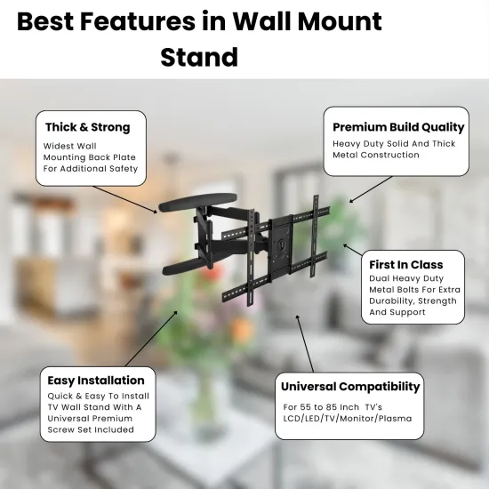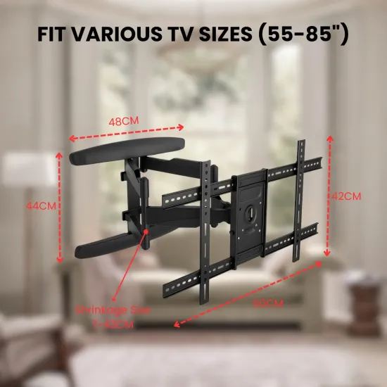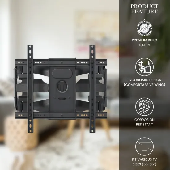 ✅ The Full Motion Cantilever TV Wall Mount for 55" to 85" TVs is designed to provide maximum flexibility and secure wall mounting for large screen televisions. With tilt, swivel, and extension adjustment along with built-in cable management and heavy-duty steel construction, this mount ensures stable support, neat installation, and an enhanced viewing experience. Perfect for home theaters, offices, conference rooms, and commercial installations.