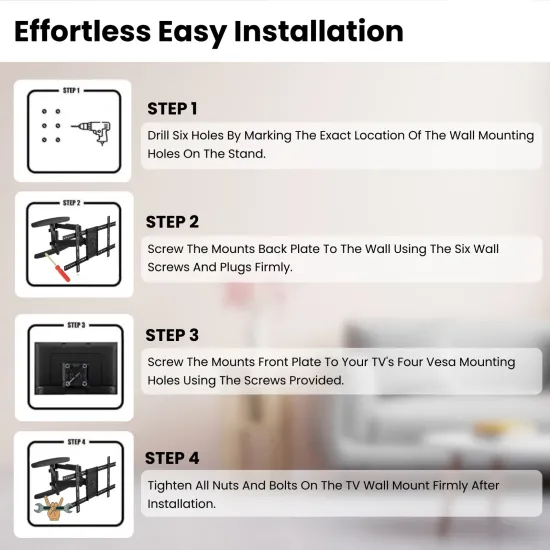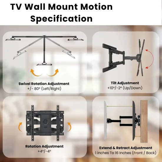 📺 Full Motion Cantilever TV Wall Mount for 55" to 85" TVs Specifications