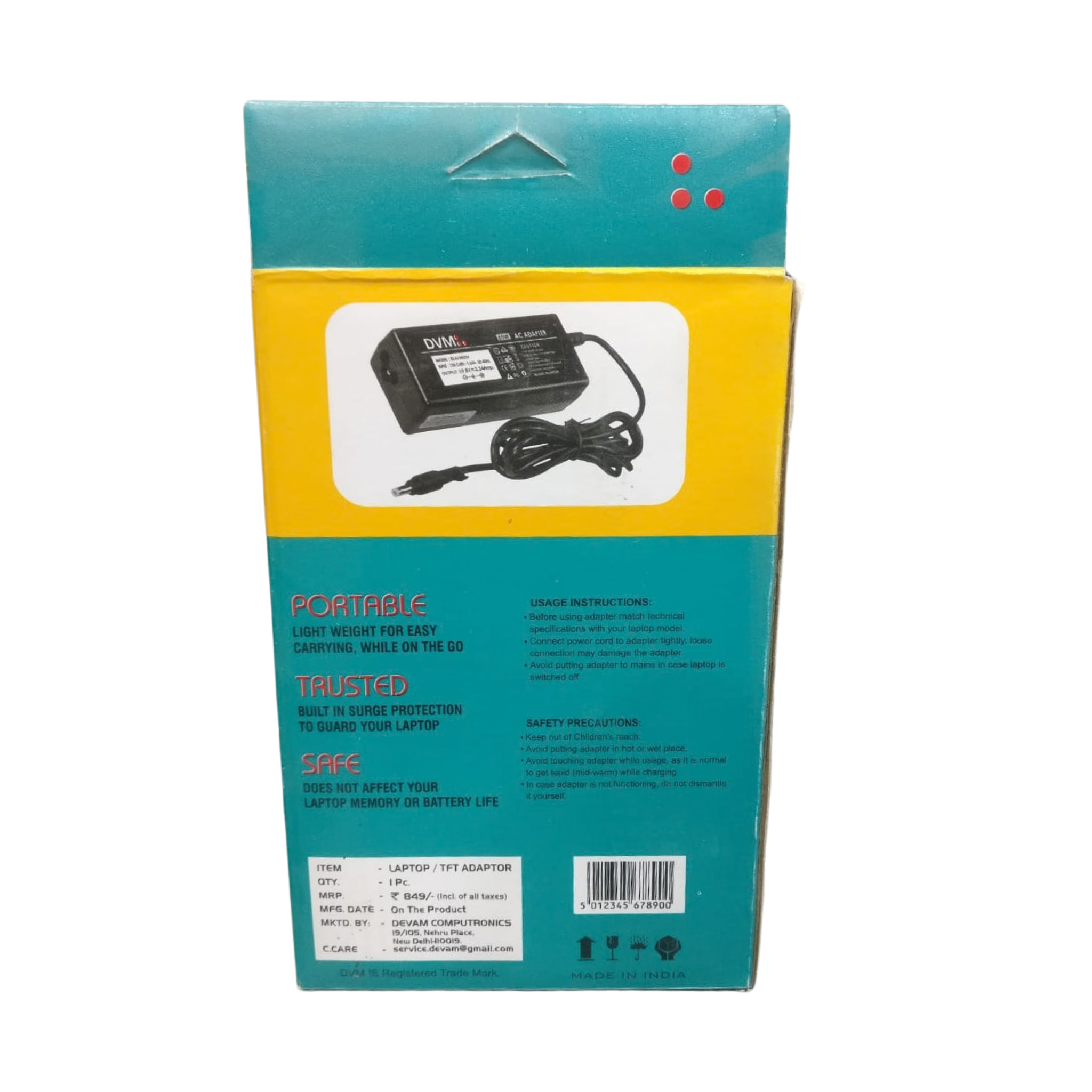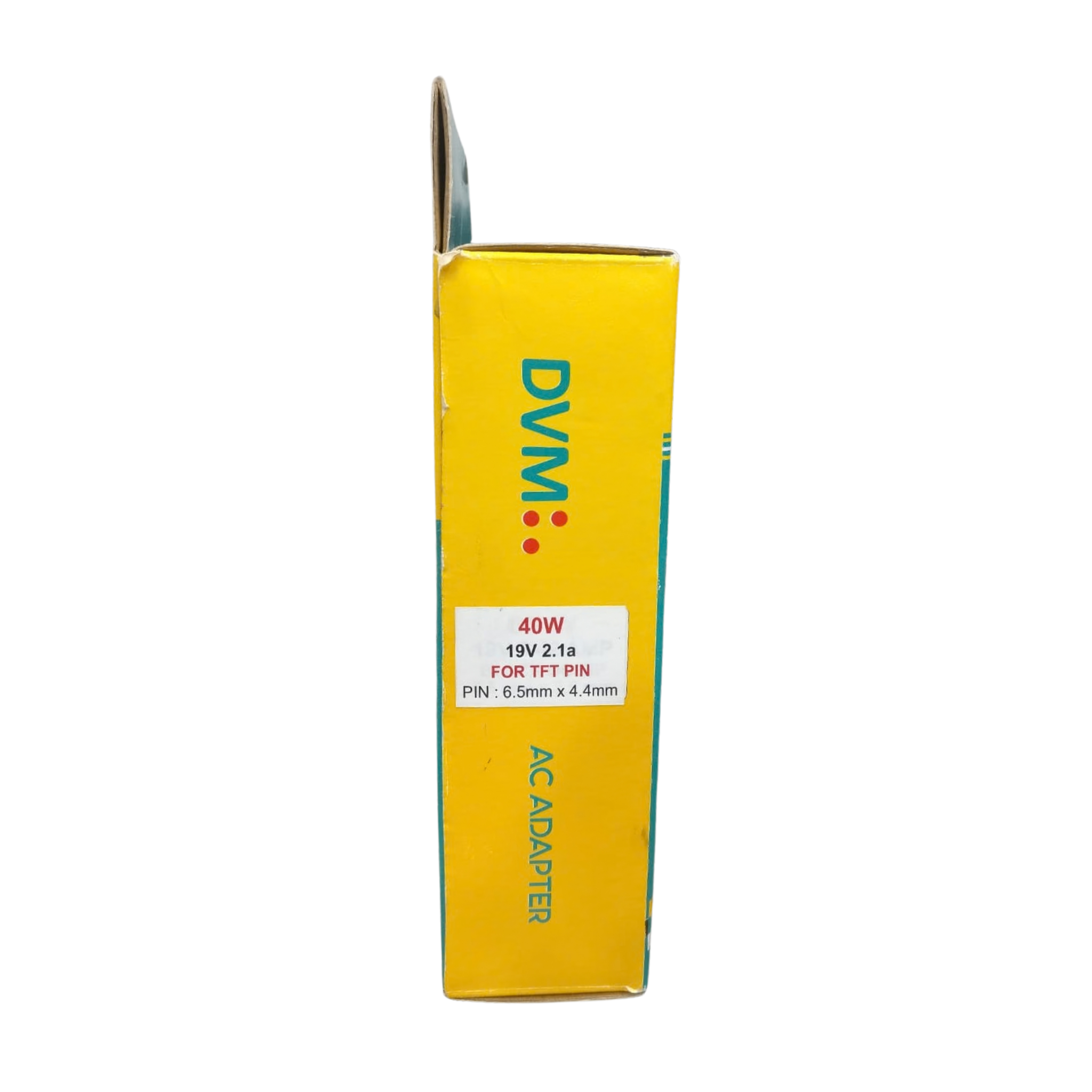DVM Adapter 40W 19V 2.1A for TFT Pin (6.5mm x 4.4mm) delivers reliable and efficient 40W power output with 19V 2.1A configuration, ideal for laptop models requiring a TFT pin connector (6.5mm x 4.4mm). Its compact design ensures convenient replacement or backup charging for home, office, or travel use. Built for dependable performance and stable voltage delivery, this adapter ensures safe operation and consistent charging for your device. Available at Golchha Computer, this adapter is a practical and dependable power solution for Indian customers.