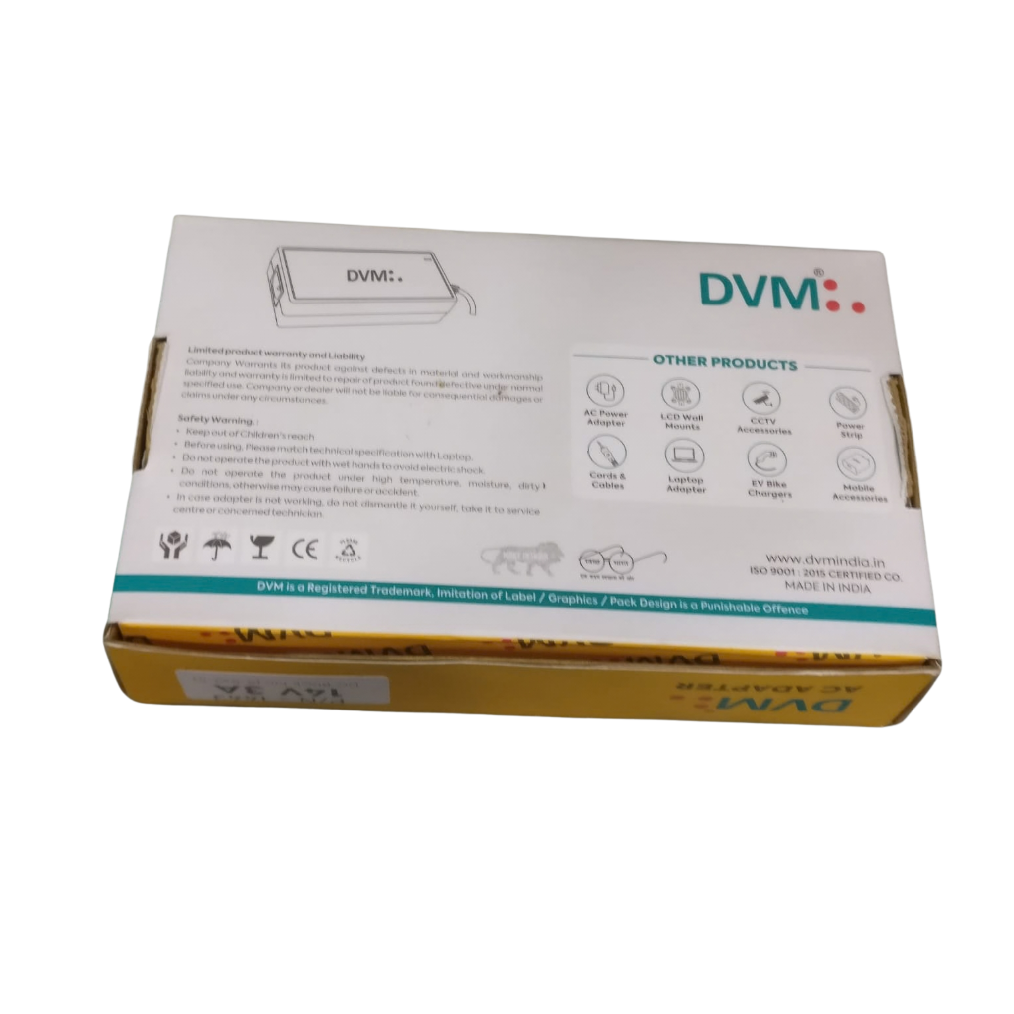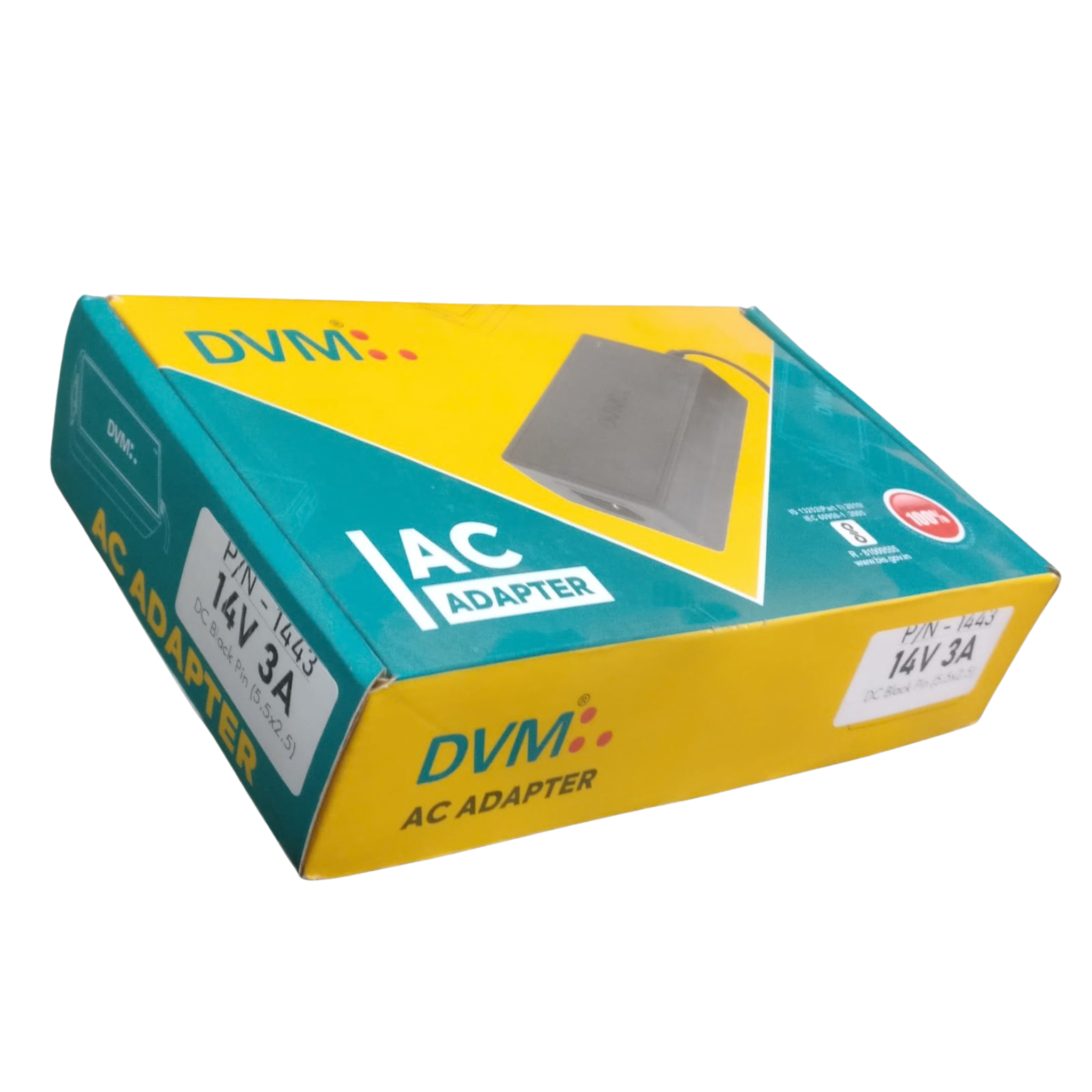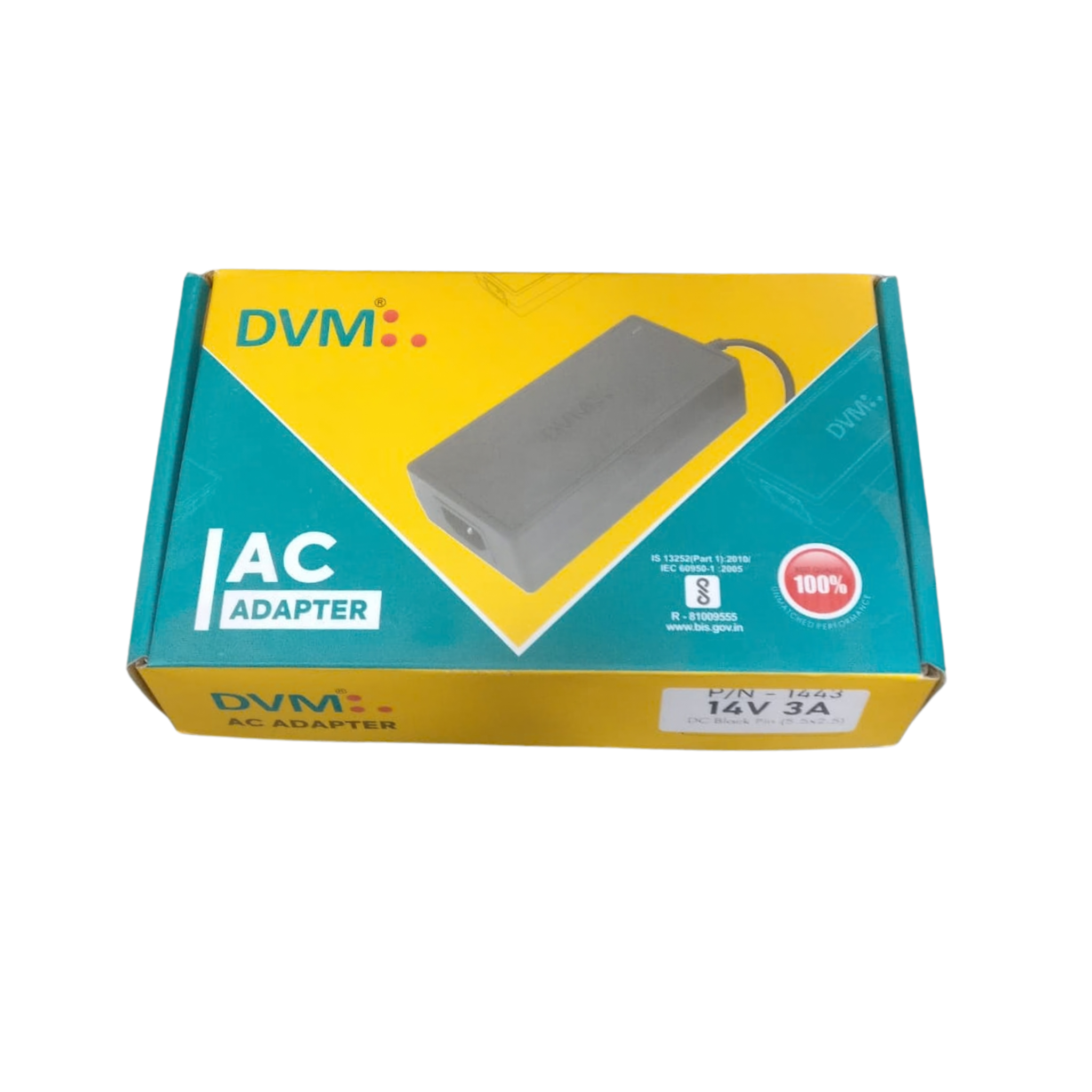 DVM AC Adapter P/N-1443 14V 3A DC Black Pin (5.5×2.5mm) delivers reliable and efficient 14V 3A power output with a standard 5.5×2.5mm DC barrel connector, ideal for powering a variety of devices such as small monitors, CCTV systems, routers, and other electronics requiring stable DC input. Its robust design ensures consistent voltage delivery and dependable performance for home, office, or commercial use. The compact and easy-to-install build makes this adapter a dependable replacement or backup power solution. Available at Golchha Computer, this AC adapter is a practical and efficient power accessory for Indian customers.