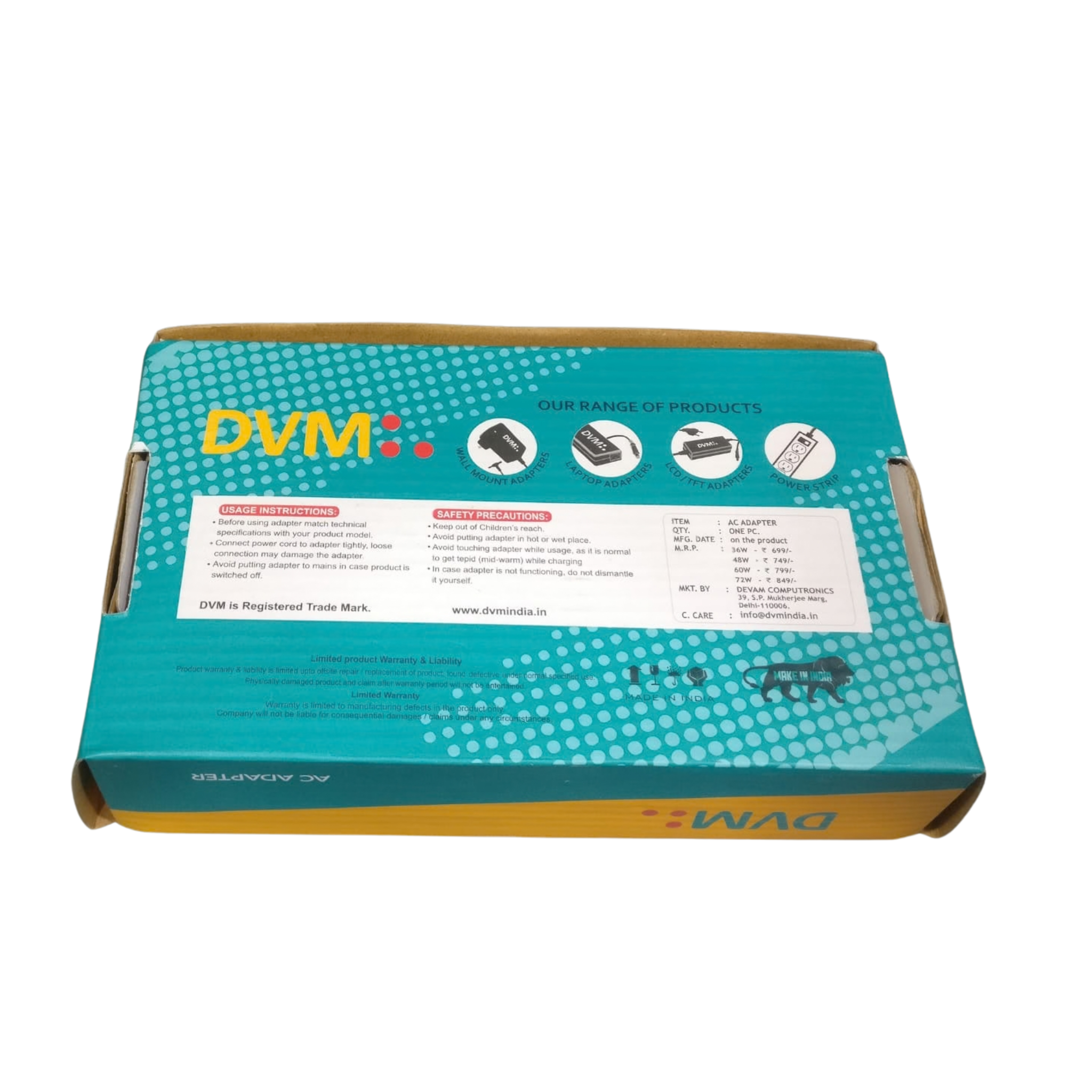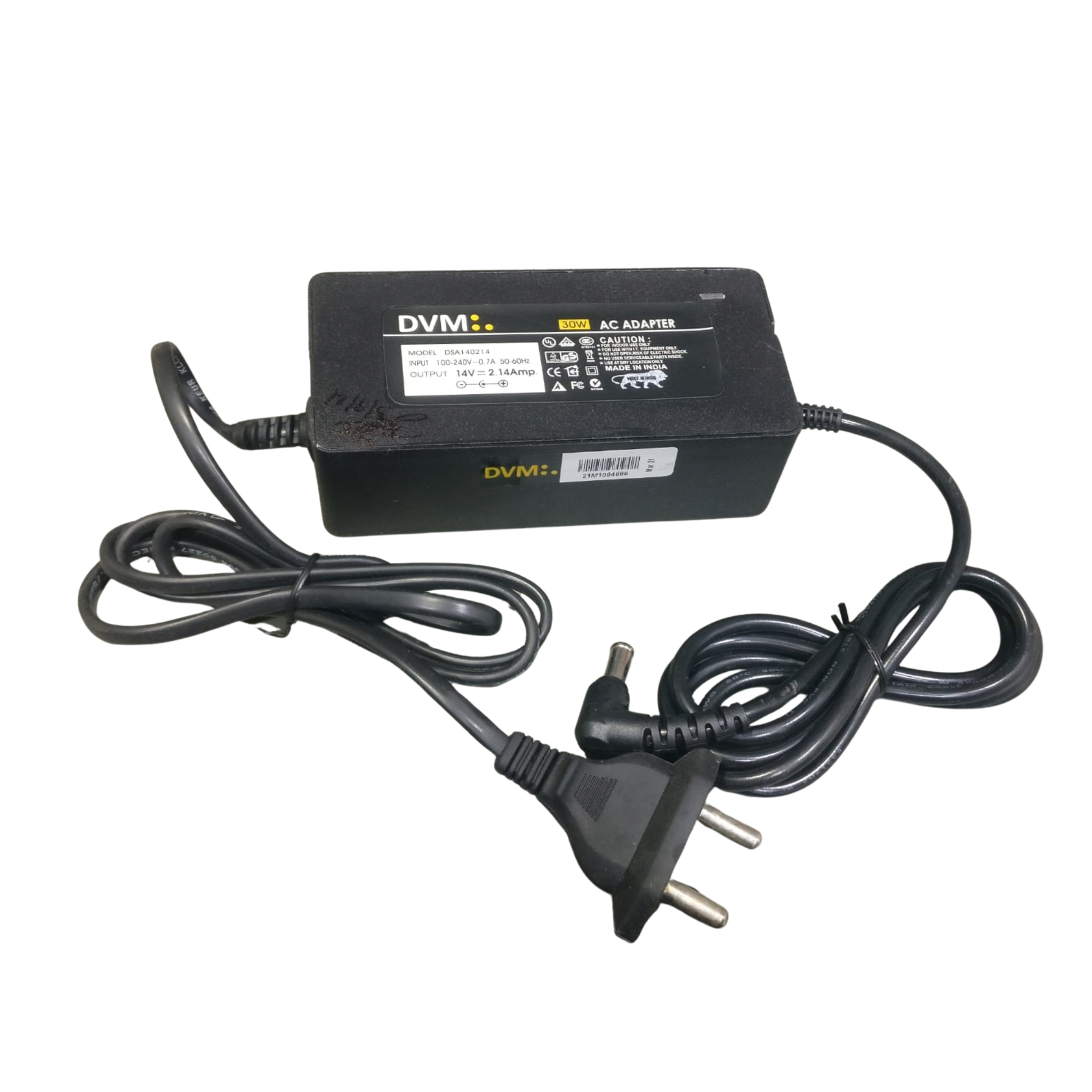 DVM AC Adapter 30W 14V 2.14A for LED/LCD (6.5mm x 4.4mm) provides stable and efficient power supply for compatible LED and LCD monitors. With 30W output, 14V voltage, and 2.14A current capacity, it ensures safe and reliable performance. The 6.5mm x 4.4mm connector offers secure fitting and easy compatibility with supported devices. Available at Golchha Computer, this adapter is a dependable replacement solution for Indian customers.