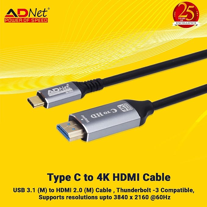 ✅ The ADNET Type-C to 4K HDMI Cable (ADP-CH-1187) enables you to connect your USB Type-C enabled laptop or tablet directly to an HDMI monitor, TV, or projector. With support for up to 4K Ultra HD resolution and a 1.8-meter length, it delivers crystal-clear video output for office presentations, gaming, streaming, and home entertainment. Easy plug-and-play installation ensures hassle-free connectivity.