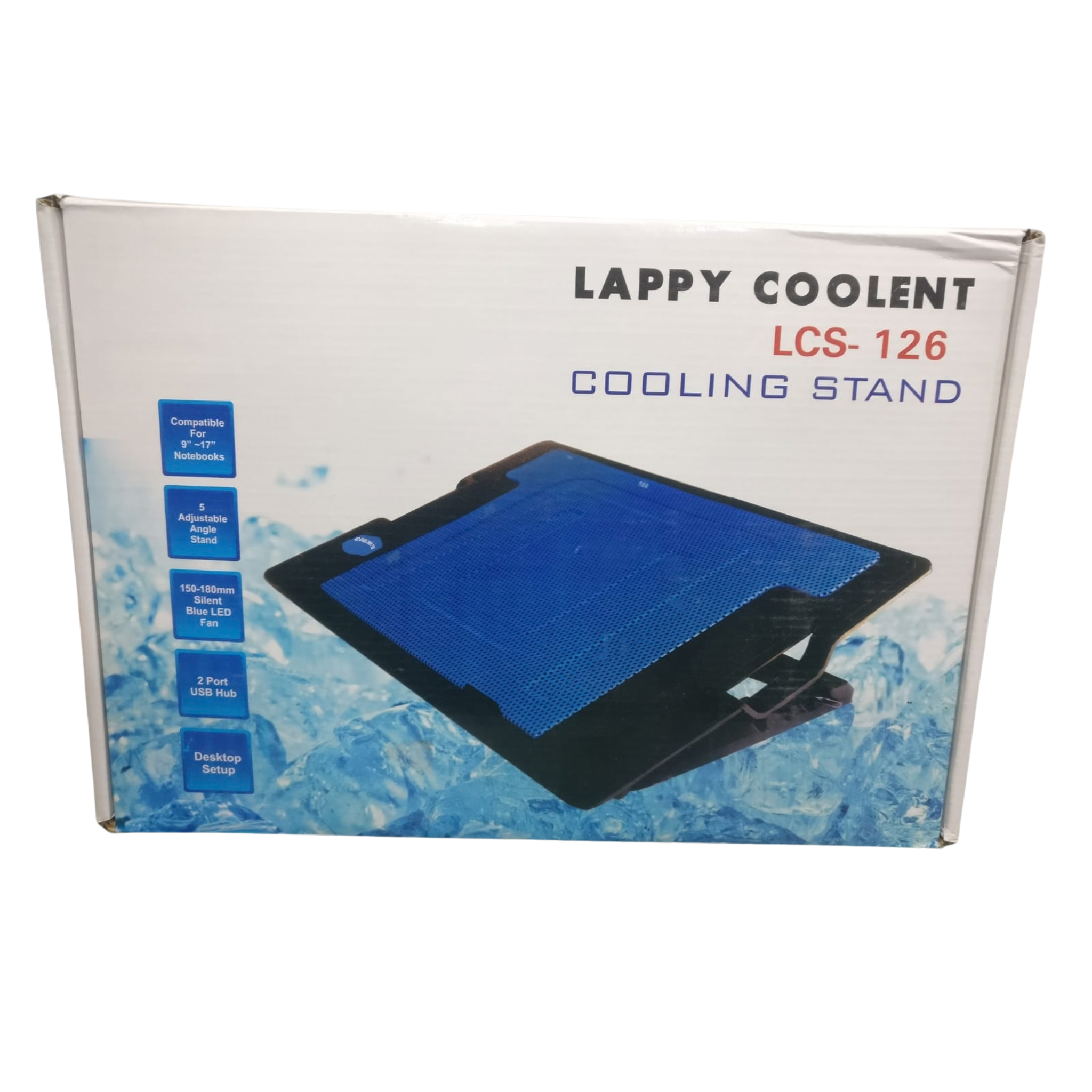 тЬЕ The Lappy Coolent LCS-126 Cooling Stand is designed to keep your laptop cool and stable with a large silent blue LED fan and adjustable viewing angles. Suitable for 9"тАУ17" laptops, it features a 2-port USB hub and ergonomic design, making it perfect for gaming, office work, and long usage sessions.