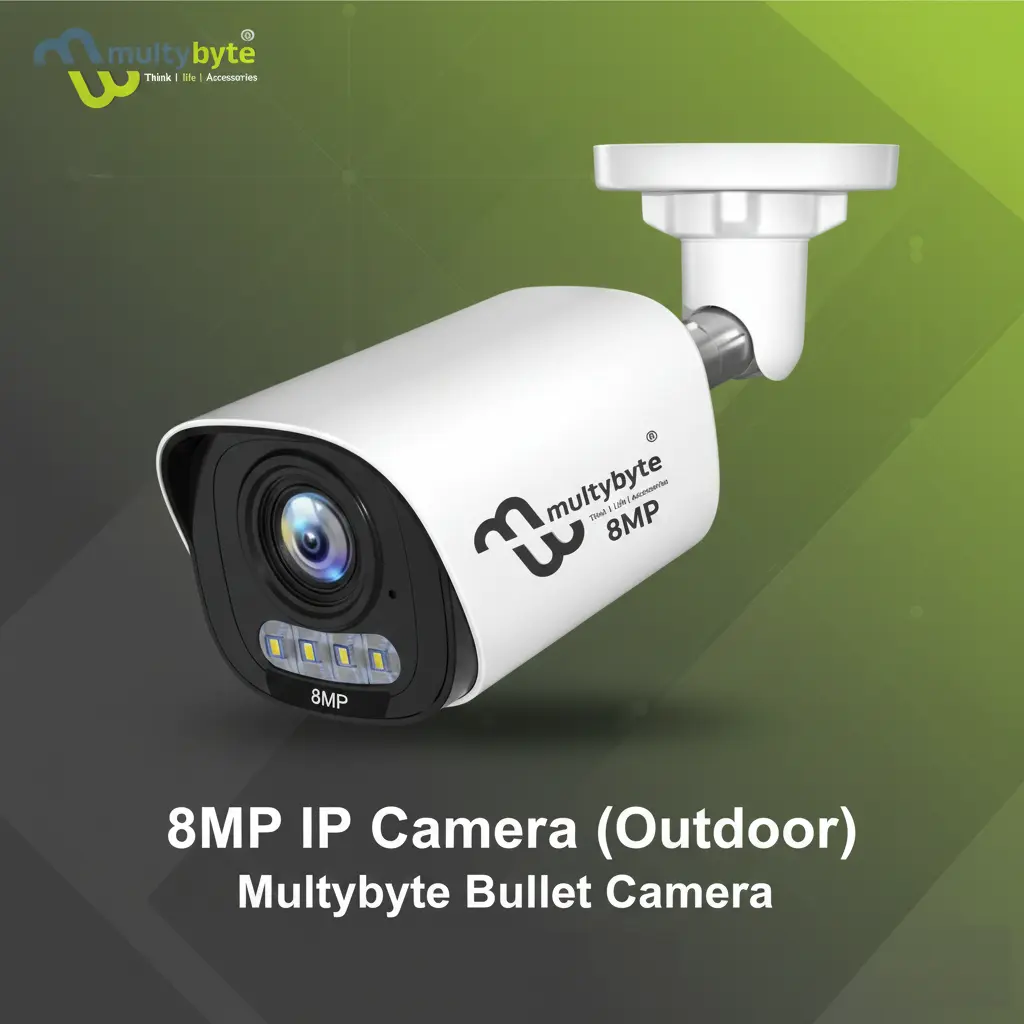 Multybyte Bullet Camera 8MP IP Camera (Outdoor) | Smart Bullet Camera, Motion Detection | Color View | 8MP Low Illumination CMOS Image Sensor provides ultra-clear 8MP surveillance designed for outdoor security monitoring. It features an advanced low illumination CMOS image sensor that captures detailed images even in low-light conditions. With smart motion detection and color view support, the camera ensures accurate alerts and clear video recording day and night. Its durable bullet design makes it suitable for outdoor installation in homes, offices, shops, and commercial spaces. Available at Golchha Computer, this camera delivers reliable and high-performance surveillance solutions for Indian customers.