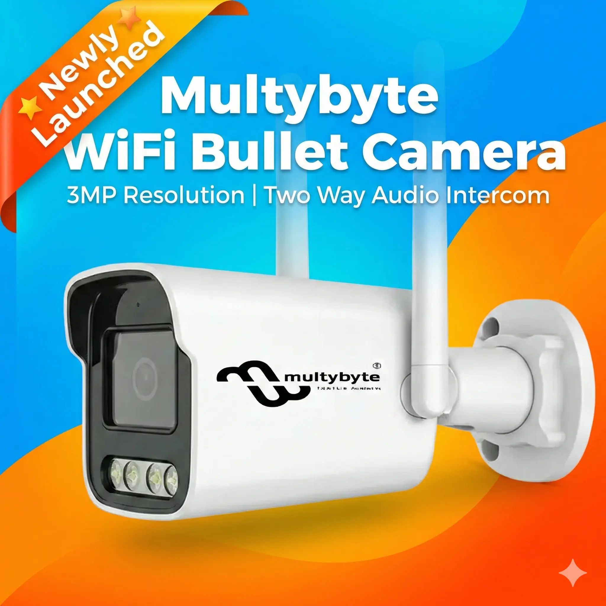 Multybyte wifi Bullet Camera With Lan Port | 3MP Resolution | Two Way Audio Intercom