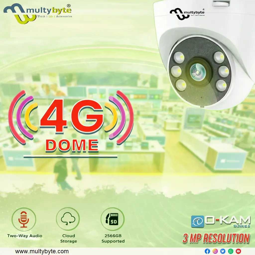 Multybyte 4G Dome Camera | 3MP Resolution | Two Way Audio | Dual Ai ColorVu delivers clear 3MP video surveillance with advanced AI features for improved security monitoring. It supports 4G connectivity, two-way audio communication, and Dual AI ColorVu technology for enhanced color night vision. Its dome design ensures wide coverage and reliable performance, making it suitable for homes, offices, and commercial spaces. Available at Golchha Computer, this camera provides a smart and efficient security solution for Indian customers.