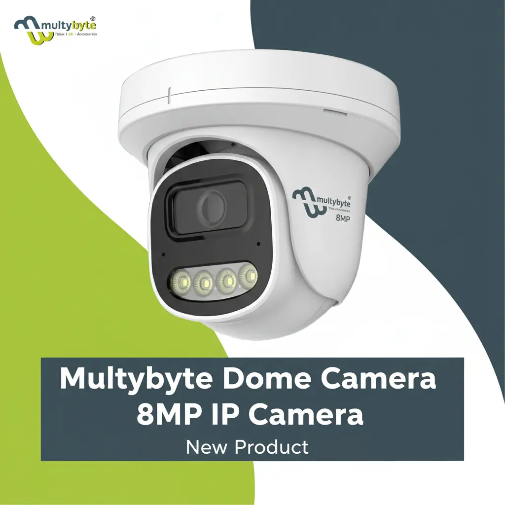 Multybyte Dome Camera 8MP IP Camera (Indoor) | Smart Dome Camera, Motion Detection | Color View | 8MP Low Illumination CMOS Image Sensor provides ultra-clear 8MP indoor surveillance with advanced smart monitoring features. Equipped with a low illumination CMOS image sensor, it delivers detailed color video even in low-light conditions. The smart dome design supports motion detection for real-time alerts and reliable security monitoring. Ideal for homes, offices, and indoor commercial spaces, this camera ensures dependable performance. Available at Golchha Computer, it offers a powerful and efficient security solution for Indian customers.