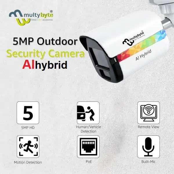 Multybyte 5MP IP Bullet CCTV Camera | Outdoor Security Camera | Dual LED Full Color Night Vision | AI Hybrid Human Detection provides high-resolution outdoor surveillance with a powerful 5MP sensor for clear and detailed monitoring. Equipped with dual LED full-color night vision, it ensures visibility even in low-light conditions. The AI hybrid human detection technology helps identify human movement accurately, reducing false alerts and improving security efficiency. Available at Golchha Computer, this camera offers a reliable and advanced security solution for Indian customers.