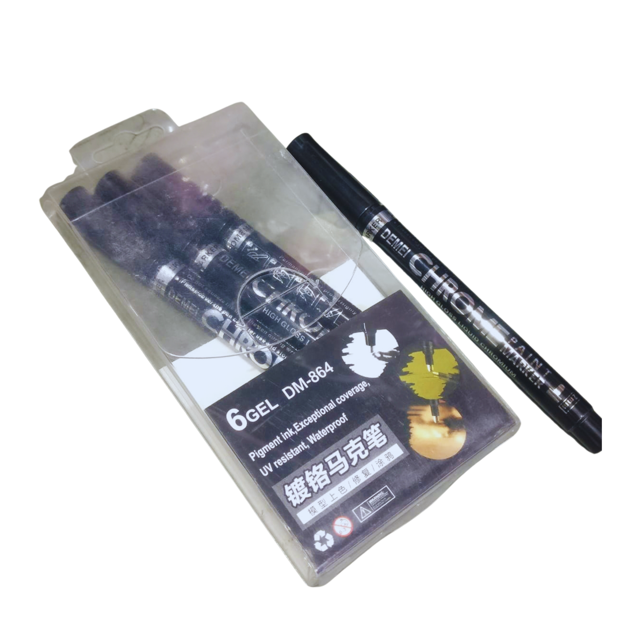 тЬЕ The Chrome Paint Marker Silver DM-864 (2mm) delivers a bright metallic chrome silver finish ideal for creative and decorative work. Its 2 mm tip ensures smooth and precise lines, making it suitable for craft projects, artwork, DIY decoration, and surface marking. The marker works effectively on multiple surfaces including metal, glass, plastic, wood, and paper, offering excellent coverage with a shiny metallic effect.