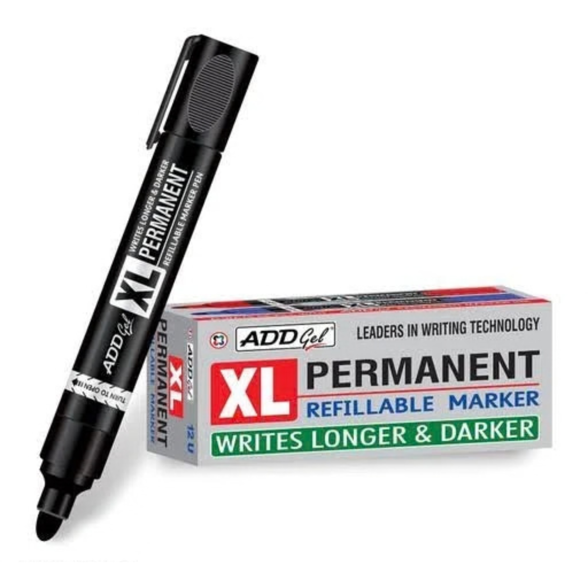 тЬЕ The ADD Gel XL Permanent Marker (Black) is designed for bold and long-lasting marking on a variety of surfaces. Its bullet tip ensures smooth and consistent writing, while the quick-drying permanent ink provides clear and smudge-resistant results. Ideal for labeling, packaging, office tasks, and everyday marking needs.