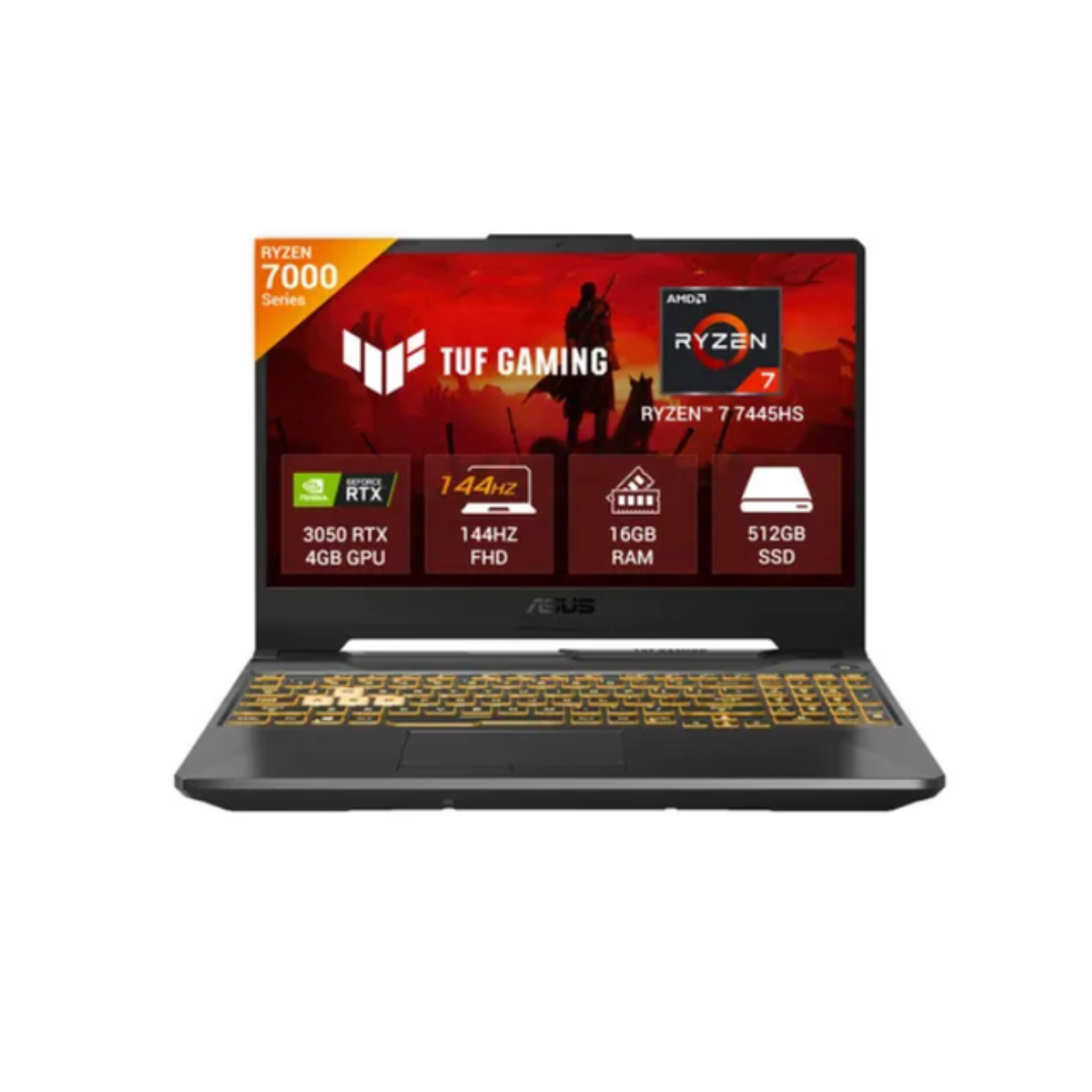 Asus Tuf A15 (FA506NCG-HN199W) Gaming Laptop, AMD Ryzen 7-7445HS, 16 GB RAM, 512 GB SSD, 15.6 Inch FHD Screen, Nvidia RTX 3050- 4GB Graphics, Windows 11 Home, RGB Backlit Keyboard, Graphite Black