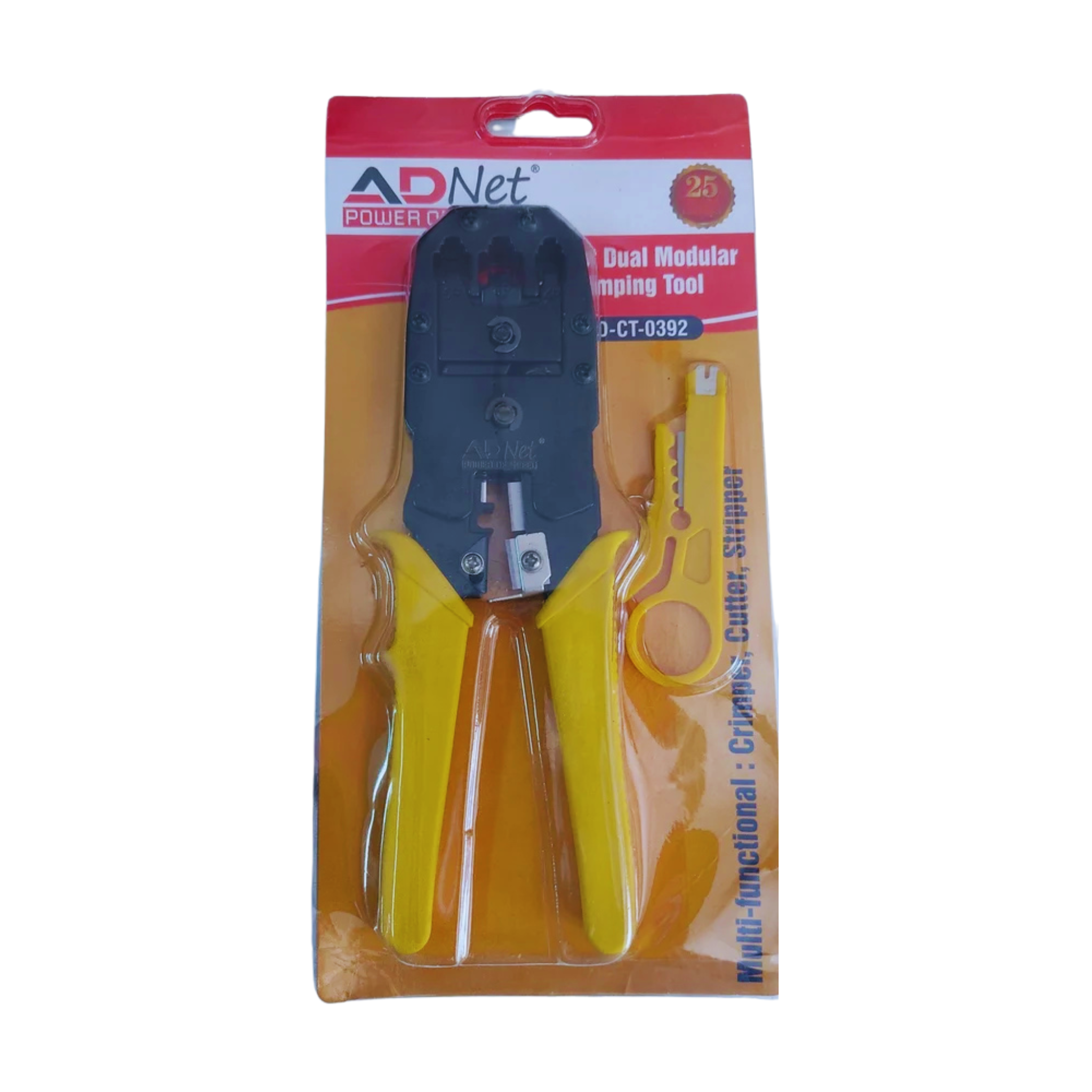 AD Net AD-CT-0392 Multifunctional Crimping Tool is designed for efficient and precise crimping of network cables, making it ideal for professional and home use. It supports multiple functions including cutting, stripping, and crimping, ensuring convenience and versatility in one tool. Built with durable materials, it offers long-lasting performance and a comfortable grip for easy handling. Available at Golchha Computer, it is a reliable choice for networking and installation tasks.