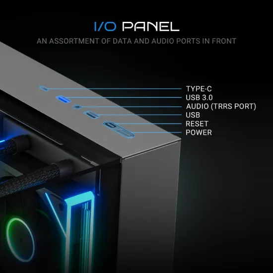 | Front I/O Ports | 1× Type-C | 1× USB 3.0 | 1× USB | Audio + Mic (TRRS) | Power Button | Reset Button |