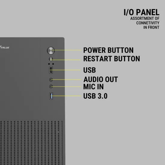 USB 3.0, USB, Audio, Mic, Power Button, Reset Button, LED Indicators |