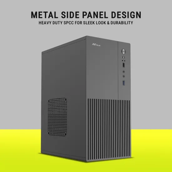 Ant Value Mid Tower Cabinet (M-ATX/M-ITX) VM4P with SMPS features a compact mid tower design compatible with M-ATX and M-ITX motherboards. It includes a pre-installed SMPS, providing a convenient and budget-friendly solution for building a PC. The cabinet offers efficient airflow and easy installation of components, making it suitable for home, office, and entry-level setups. Available at Golchha Computer, this cabinet delivers reliable performance for Indian users.