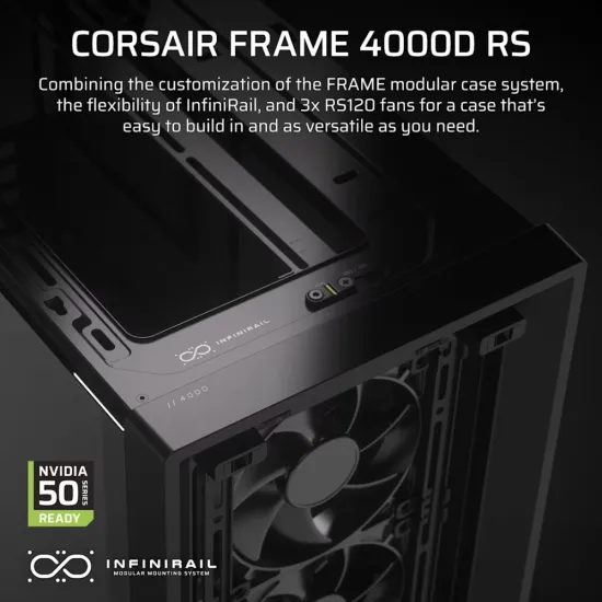 ✅ The CORSAIR Frame 4000D RS ARGB Cabinet is a premium mid-tower case built for high-performance PC builds. Featuring a modular high-airflow design, InfiniRail fan mounting system, and support for up to 360mm radiators, it ensures superior cooling. With 3 pre-installed ARGB fans and compatibility with next-gen rear-connector motherboards, it delivers both cutting-edge aesthetics and clean cable management for modern gaming and professional setups.