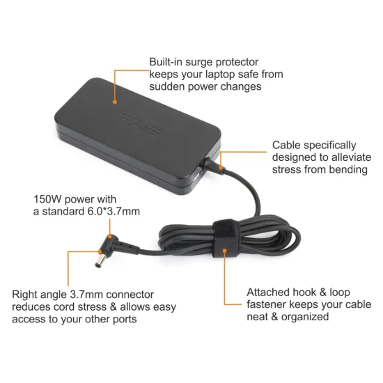 тЬЕ The Asus 150W Laptop Adapter (Sony Pin) is a high-performance replacement charger designed for gaming and high-end laptops. With stable 20V output and 7.5A current, it ensures fast and reliable power delivery, making it ideal for heavy usage and long working sessions.