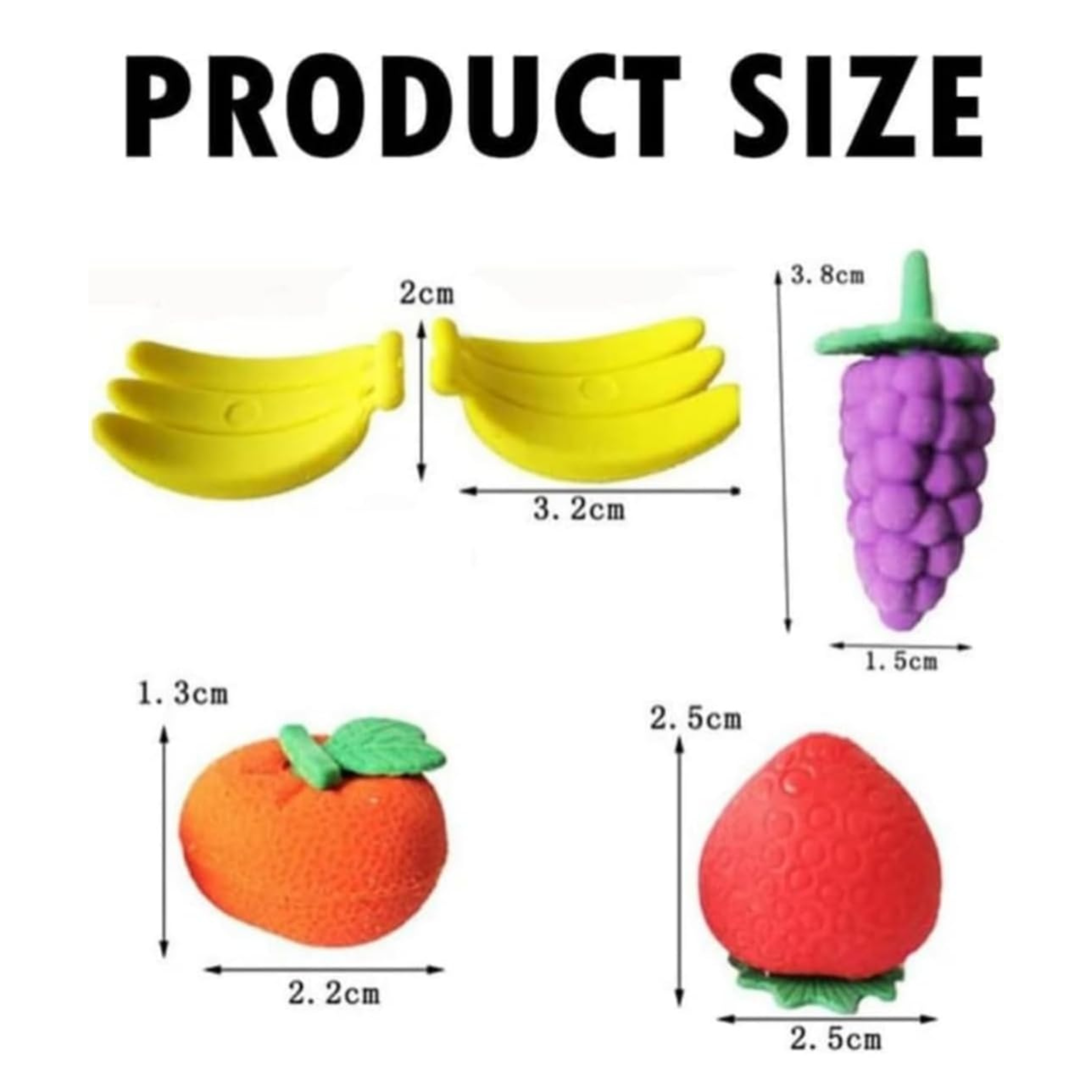 тЬЕ The Fruit Shaped Eraser Set Multicolor Rubber School Erasers adds fun and creativity to everyday stationery. Designed in adorable fruit shapes like apple, banana, and grapes, these erasers are made from non-toxic rubber for safe and smooth erasing. Bright colors and cute designs make them perfect for kids, school use, return gifts, and art activities. :contentReference[oaicite:0]{index=0}