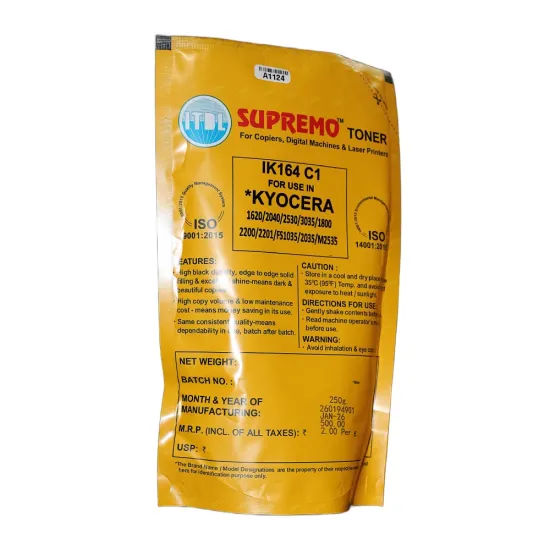 ITDL Copier Toner Powder For Kyocera IK164-C1 250gm Black is a high-performance copier toner powder designed for sharp, clear, and consistent printing results. Specially formulated for Kyocera IK164-C1 series copiers, it ensures smooth operation, excellent print density, and long-lasting durability. The 250gm pack is ideal for home, office, and small business printing needs. Available at Golchha Computer, this toner powder provides a reliable, efficient, and cost-effective printing solution across India.