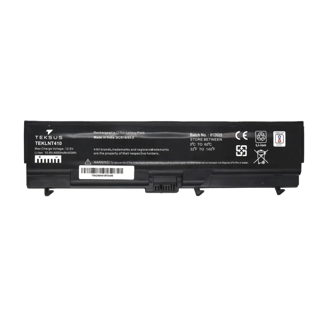 Teksus Laptop Battery Compatible For Lenovo IBM T410 6C is a high-quality replacement battery designed to provide reliable and long-lasting power for Lenovo IBM T410 laptops. Crafted with premium lithium-ion cells, it delivers stable energy output, fast charging, and excellent battery backup for smooth performance and uninterrupted productivity. Equipped with safety features against overcharging, overheating, and short circuits, it ensures secure operation. Available at Golchha Computer, this battery is a dependable choice for Indian customers seeking performance, reliability, and durability.