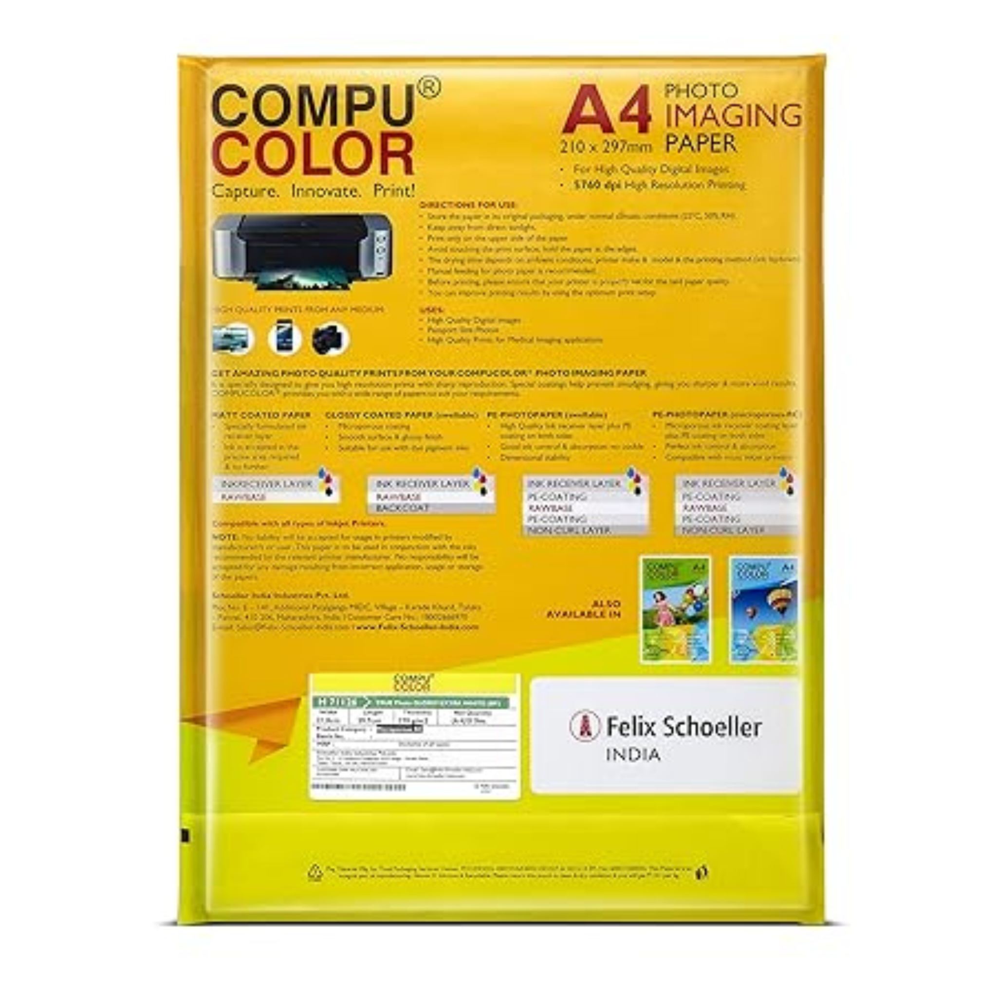 COMPU COLOR TRUE PHOTO Glossy Extra White 270 GSM A4 (20 Sheets) is premium glossy photo paper designed for sharp, vibrant, and professional-quality image printing. With a bright extra white finish and 270 GSM thickness, it delivers excellent color reproduction and crisp detail for photos, artwork, and high-resolution prints. Suitable for inkjet printers, this A4 pack of 20 sheets ensures reliable performance and long-lasting results. Available at Golchha Computer, it’s an ideal choice for photographers, designers, and creative professionals in India.